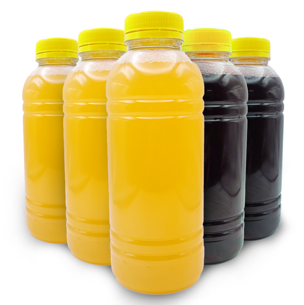 GARRAFA TRANSP REDONDA 1000ML C/TAMPA AMARELA C/100UN