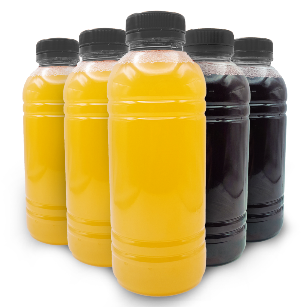GARRAFA TRANSP REDONDA 1000ML C/TAMPA LARANJA C/100UN
