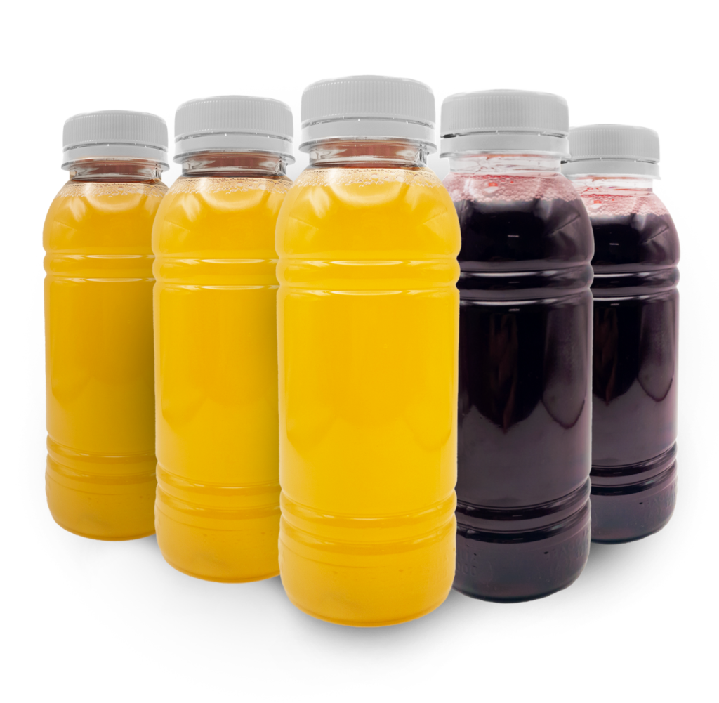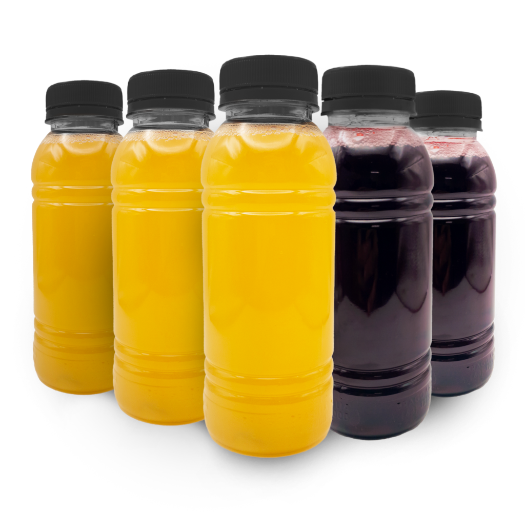 GARRAFA TRANSP REDONDA 300ML C/TAMPA LARANJA C/100UN