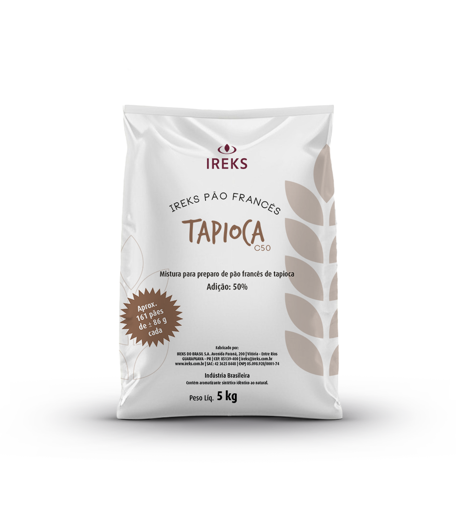 O Pão Francês de Tapioca Ireks é uma inovação na panificação rústica, combinando o formato clássico do pão francês com a leveza e o sabor característico da tapioca granulada. Com 50 unidades por saco de 5kg, este produto oferece uma experiência sensorial única com miolo macio, úmido e uma casca excepcionalmente crocante.